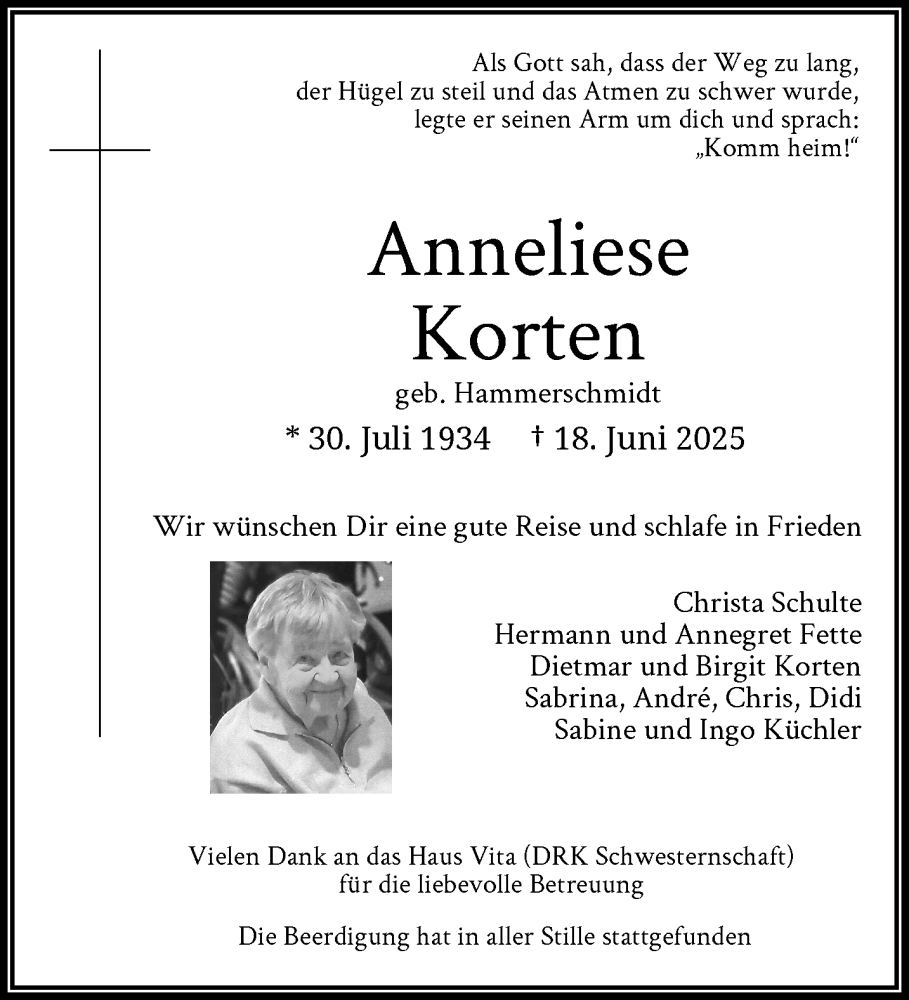 Hier finden Sie alle Traueranzeigen aus der Zeitung, die bisher für Anneliese Korten erschienen sind. Weitere Traueranzeigen, die in der Zeitung erscheinen, werden hier ebenfalls aufgelistet