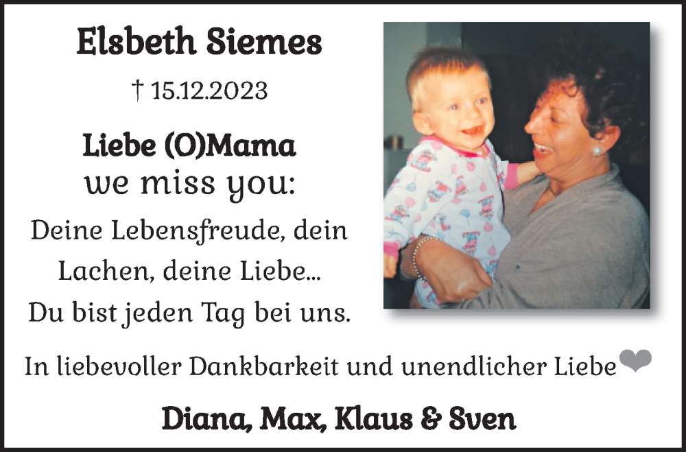 Hier finden Sie alle Traueranzeigen aus der Zeitung, die bisher für Elsbeth Siemes erschienen sind. Weitere Traueranzeigen, die in der Zeitung erscheinen, werden hier ebenfalls aufgelistet
