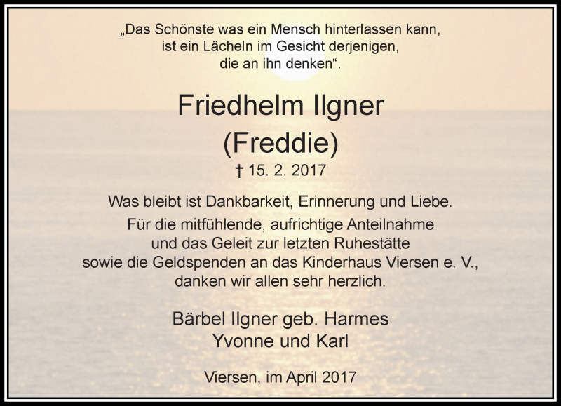 Hier finden Sie alle Traueranzeigen aus der Zeitung, die bisher für Friedhelm Ilgner erschienen sind. Weitere Traueranzeigen, die in der Zeitung erscheinen, werden hier ebenfalls aufgelistet