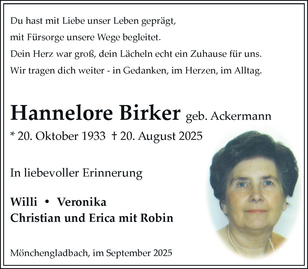 Hier finden Sie alle Traueranzeigen aus der Zeitung, die bisher für Hannelore Birker erschienen sind. Weitere Traueranzeigen, die in der Zeitung erscheinen, werden hier ebenfalls aufgelistet