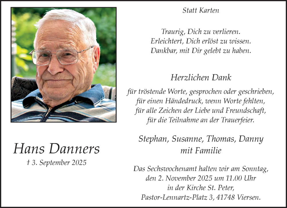 Hier finden Sie alle Traueranzeigen aus der Zeitung, die bisher für Hans Danners erschienen sind. Weitere Traueranzeigen, die in der Zeitung erscheinen, werden hier ebenfalls aufgelistet