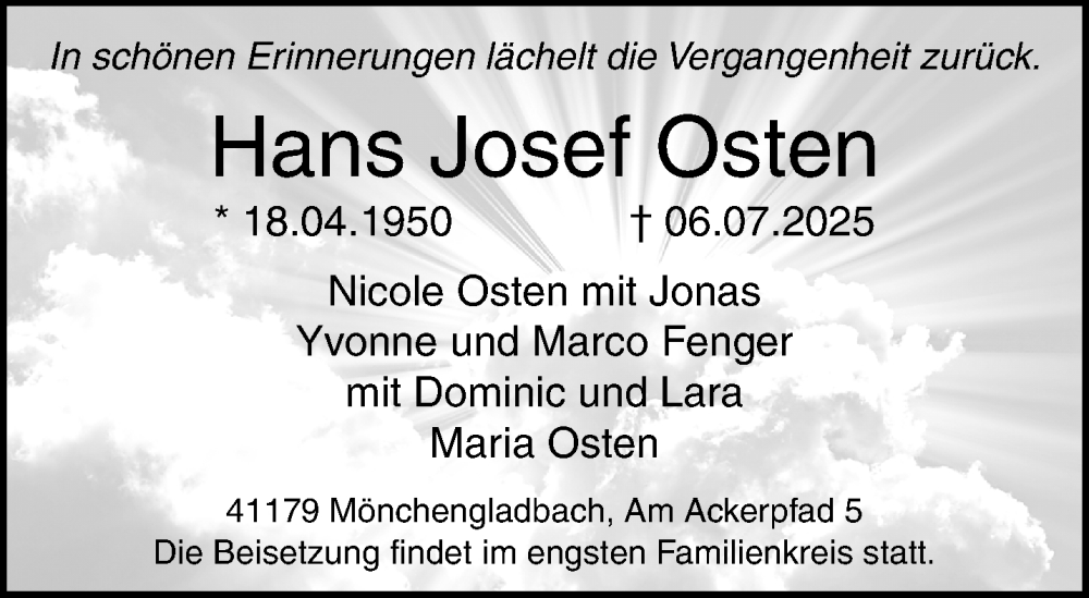 Hier finden Sie alle Traueranzeigen aus der Zeitung, die bisher für Hans Josef Osten erschienen sind. Weitere Traueranzeigen, die in der Zeitung erscheinen, werden hier ebenfalls aufgelistet
