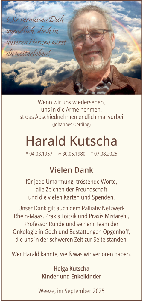 Hier finden Sie alle Traueranzeigen aus der Zeitung, die bisher für Harald Kutscha erschienen sind. Weitere Traueranzeigen, die in der Zeitung erscheinen, werden hier ebenfalls aufgelistet