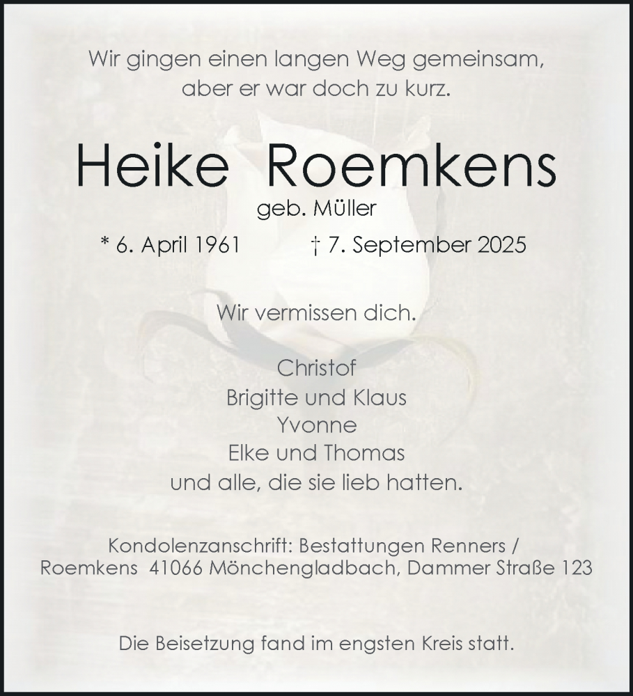 Hier finden Sie alle Traueranzeigen aus der Zeitung, die bisher für Heike Roemkens erschienen sind. Weitere Traueranzeigen, die in der Zeitung erscheinen, werden hier ebenfalls aufgelistet