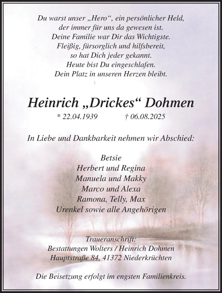 Hier finden Sie alle Traueranzeigen aus der Zeitung, die bisher für Heinrich Dohmen erschienen sind. Weitere Traueranzeigen, die in der Zeitung erscheinen, werden hier ebenfalls aufgelistet