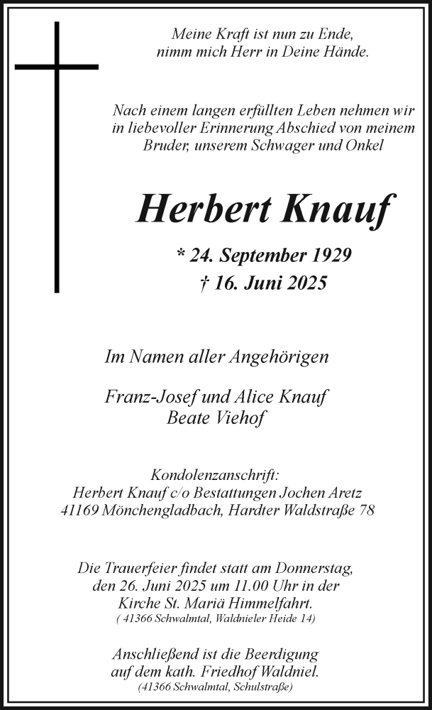 Hier finden Sie alle Traueranzeigen aus der Zeitung, die bisher für Herbert Knauf erschienen sind. Weitere Traueranzeigen, die in der Zeitung erscheinen, werden hier ebenfalls aufgelistet