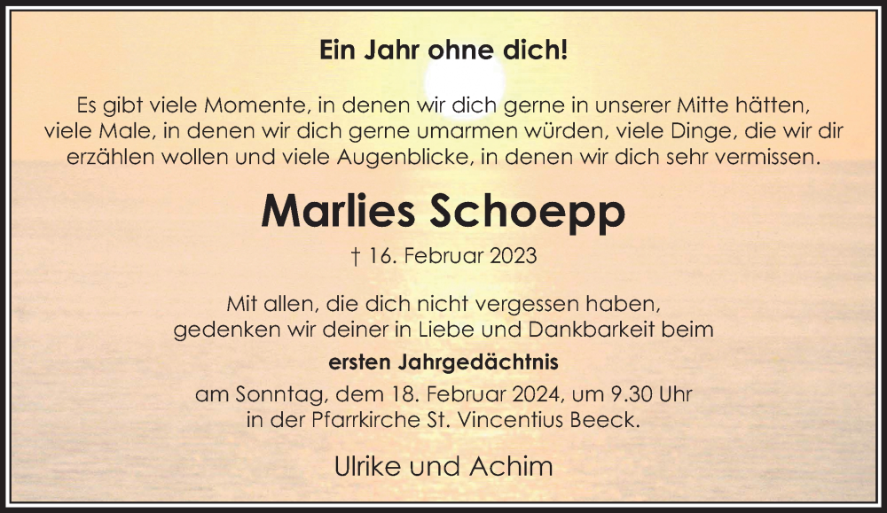 Hier finden Sie alle Traueranzeigen aus der Zeitung, die bisher für Marlies Schoepp erschienen sind. Weitere Traueranzeigen, die in der Zeitung erscheinen, werden hier ebenfalls aufgelistet