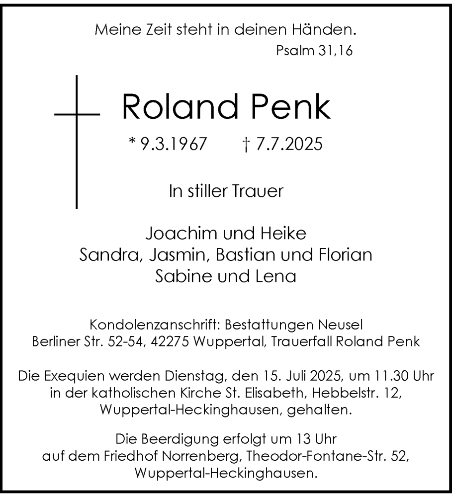 Hier finden Sie alle Traueranzeigen aus der Zeitung, die bisher für Roland Penk erschienen sind. Weitere Traueranzeigen, die in der Zeitung erscheinen, werden hier ebenfalls aufgelistet