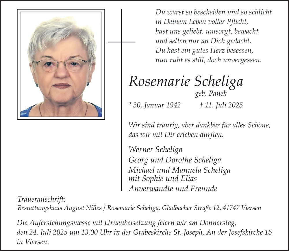 Hier finden Sie alle Traueranzeigen aus der Zeitung, die bisher für Rosemarie Scheliga erschienen sind. Weitere Traueranzeigen, die in der Zeitung erscheinen, werden hier ebenfalls aufgelistet
