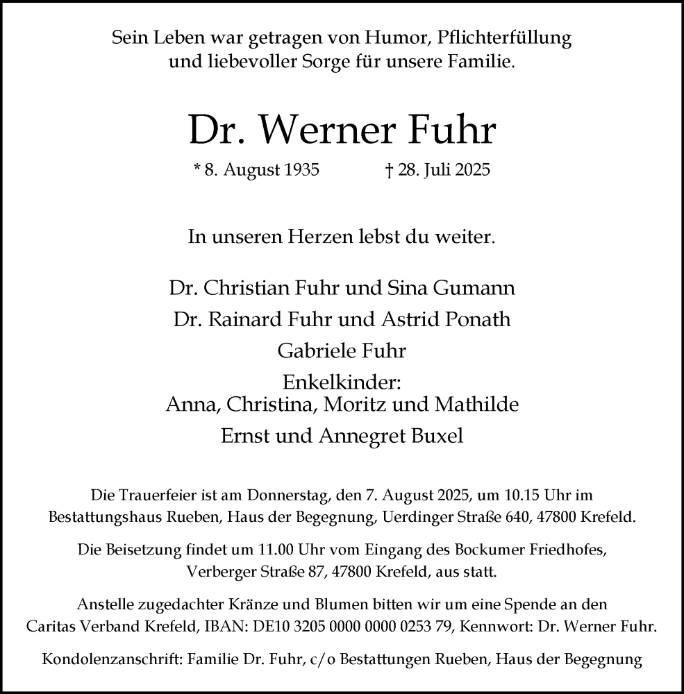Hier finden Sie alle Traueranzeigen aus der Zeitung, die bisher für Werner Fuhr erschienen sind. Weitere Traueranzeigen, die in der Zeitung erscheinen, werden hier ebenfalls aufgelistet