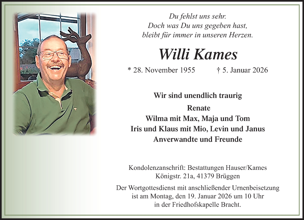 Hier finden Sie alle Traueranzeigen aus der Zeitung, die bisher für Willi Kames erschienen sind. Weitere Traueranzeigen, die in der Zeitung erscheinen, werden hier ebenfalls aufgelistet